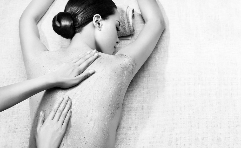 Lichaamsscrub, massage met etherische olie van Japanse Kersenbloesem.